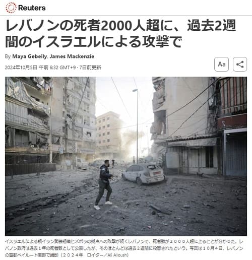 しかし、イスラエルはミサイルや無人ドローンで、首都ベイルートを空爆しているのは事実のようです。また、パレスチナのガザへの攻撃も限定されており、ウクライナのように欧米諸国からの支援を受けるために時間稼ぎをしている可能性があります。
