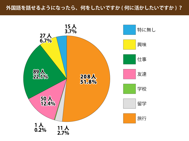 - 調査内容:英語または他の言語を話せるようになったら、何をしたいですか?